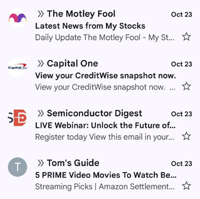 In this Gmail example on an Android phone, the top three messages include BIMI logos.