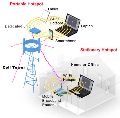 Cell towers may provide Internet access directly to a home or office. The cellular carrier provides the customer with a "mobile broadband router," which is a Wi-Fi base station that provides the local hotspot. See mobile broadband router. See Wi-Fi vs. cellular.